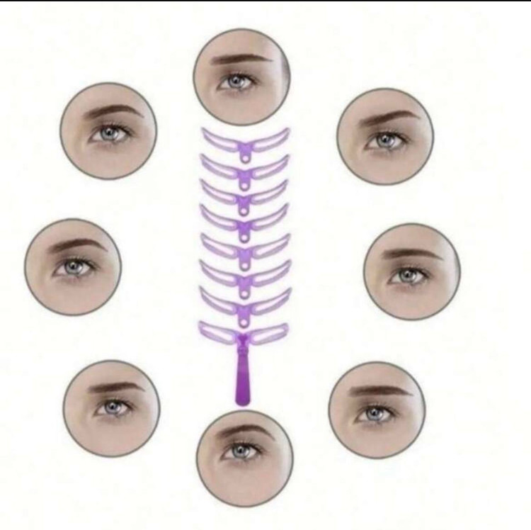 پک هشت تکه شامل هشت مدل شابلون ابرو و یک استند که کمک میکند به راحتی ابروهای خودتان را طراحی کنید