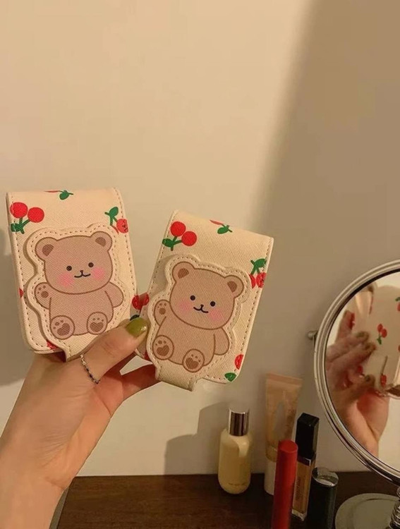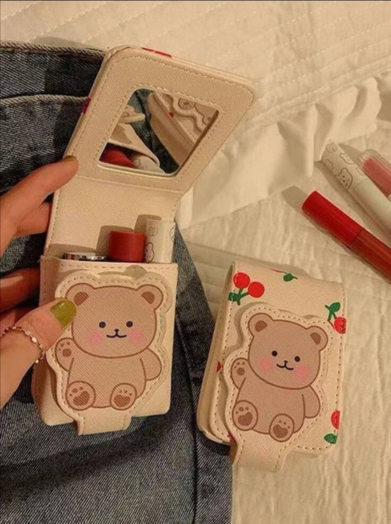 1pc Bear Shaped Lipstick Pouch With Mirror