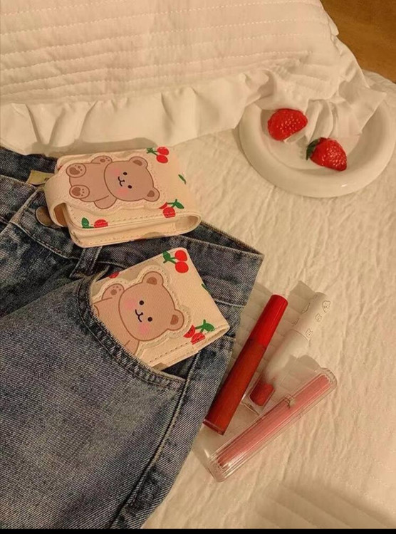 کیف ارایشی جیبی طرح خرسی به همراه آیینه